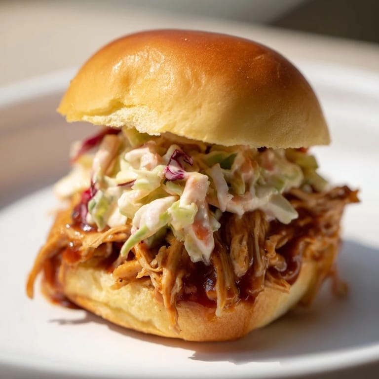 If you want heat, stir in some hot sauce or chili flakes with the chicken, or use a spicy barbecue sauce. For a smokier flavor, add a few drops of liquid smoke to the cooking liquid. You can also swap the slaw for pickles and red onion if you want something sharper and less creamy.