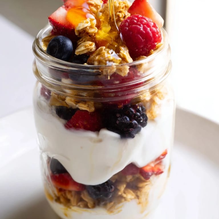 The genius of a parfait is that it respects the ingredient swaps you need to make. Dairy-free yogurt works just as well as regular, gluten-free granola doesn't compromise anything, and if someone hands you a banana or some coconut flakes, they fit right into the layers without changing the whole equation. I've made versions with chia seeds, sliced almonds, granola I baked myself, and even a drizzle of balsamic vinegar that shouldn't have worked but did.
