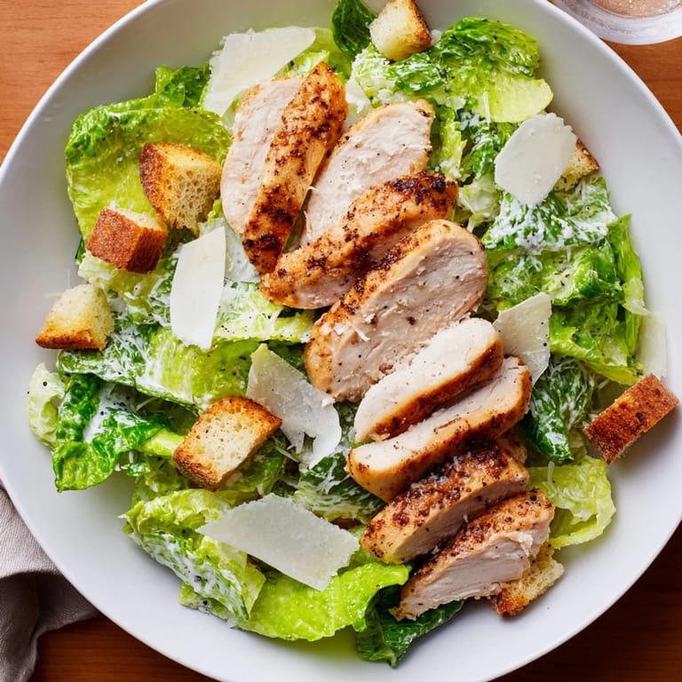 A Caesar salad succeeds because every element has a reason for being there. The crisp lettuce is a canvas, the warm chicken adds substance, the croutons provide contrast, and the cheese brings richness and saltiness. Nothing here is accidental. When you're assembling it, think about making sure each bite has a little of everything. The dressing isn't just a lubricant. It's a bridge that ties all these pieces together into something that feels intentional and complete.