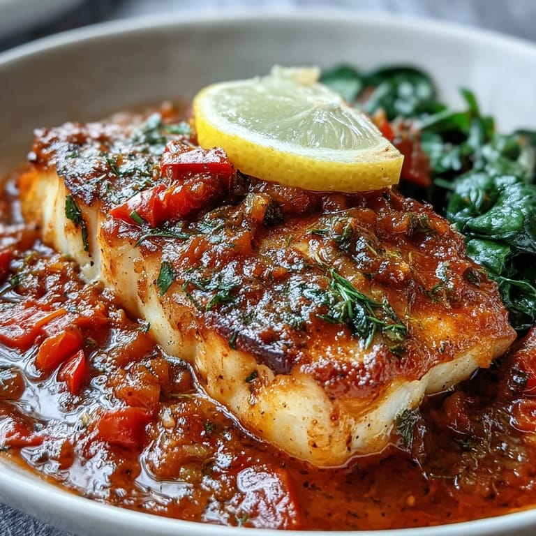 Save There's something deeply satisfying about lifting the lid and seeing those cod fillets nestled in bright red sauce, steam rising, lemon slices softened and fragrant. The first time I made this, I stood there for a moment just looking at it before calling everyone to the table. It felt like I'd created something that mattered, not just dinner but a small celebration of color and flavor and the simple act of feeding people I care about.