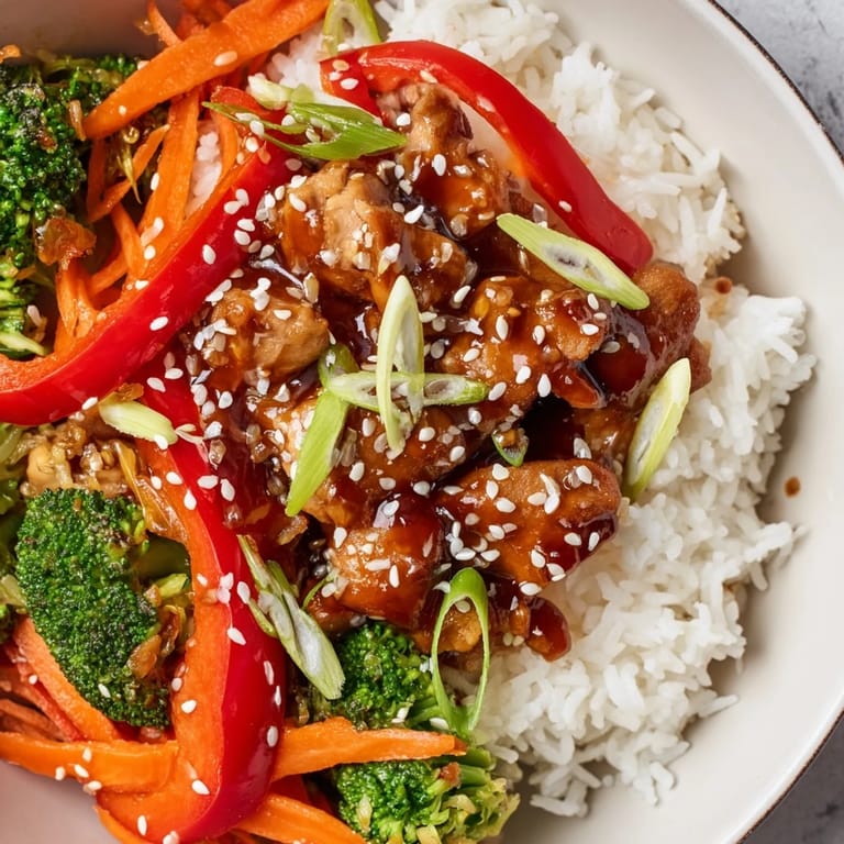 Serve it hot right after you plate it so the rice is warm and the sauce is still glossy. Leftovers keep for three days in the fridge, though the vegetables soften a bit. The sauce and chicken refrigerate well separately if you want to rebuild bowls when you're ready to eat.